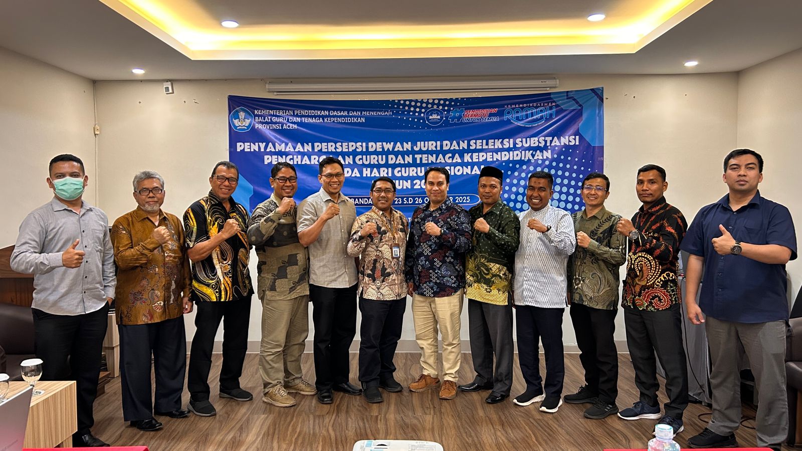 Kegiatan Penjurian tahap I berupa seleksi Substansi yang menilai video dan naskah terbaik dari peserta yaitu Guru guru TK sederajat, Guru SMP sederajat, Guru SMA/SMK/SLB sederajat, Kepala Sekolah dan Pengawas Sekolah dari seluruh Kabupaten Kota Di Provinsi Aceh berlangsung pada Kamis hingga Minggu, 23–26 Oktober 2025, bertempat di Hip Hope Hotel, Banda Aceh.