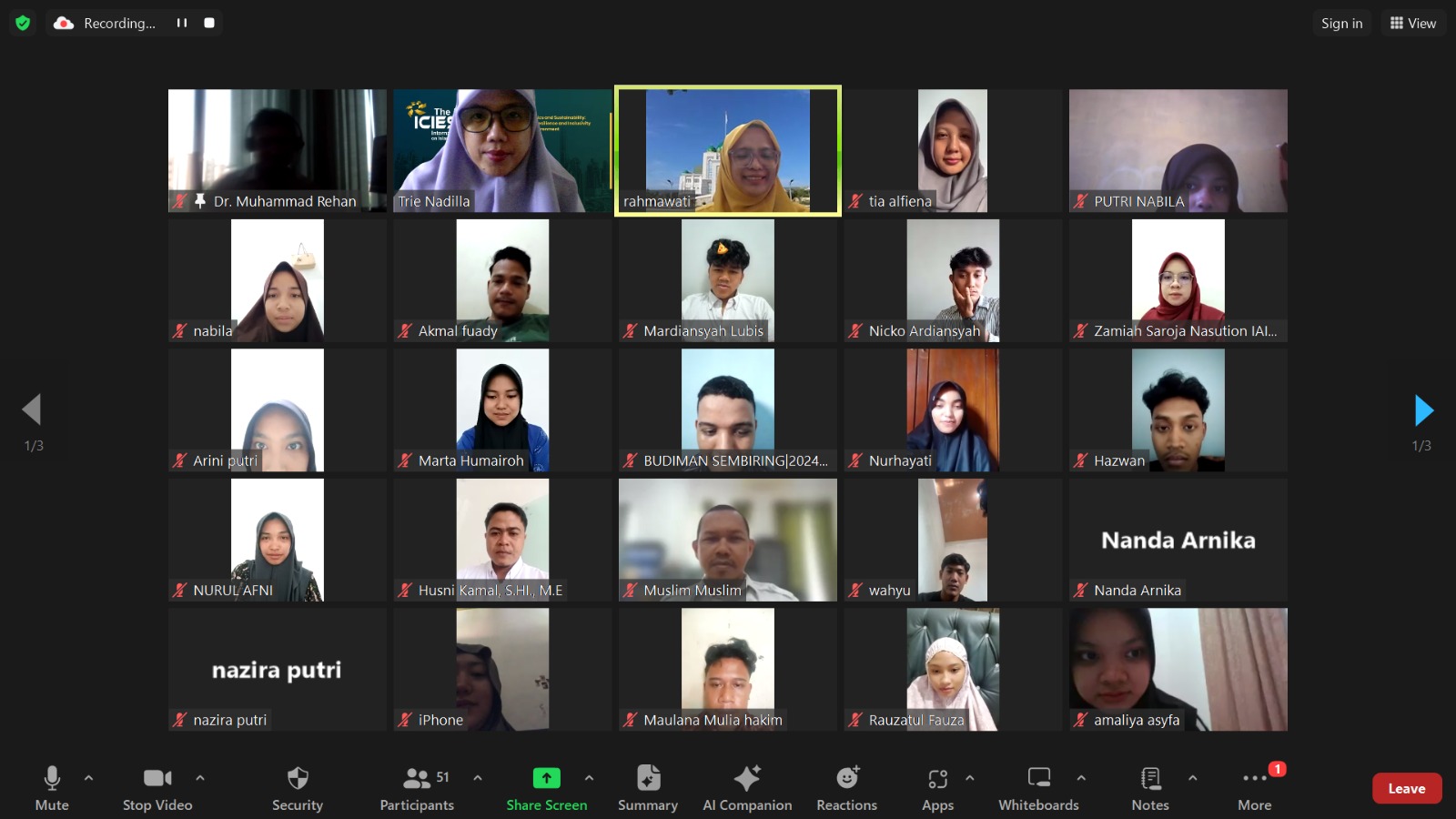 Pada hari Selasa, 21 Oktober 2025 (29 Rabi'ul Akhir 1447 H), bertempat secara Zoom Meeting, telah dilaksanakan kegiatan Visiting Lecturer dengan topik: "Financing Sustainability Emerging Trends in Green Finance Research". Acara ini disampaikan oleh Dr. Muhammad Rehan, Assistant Professor dari Institute of Business Management, Karachi, Pakistan.